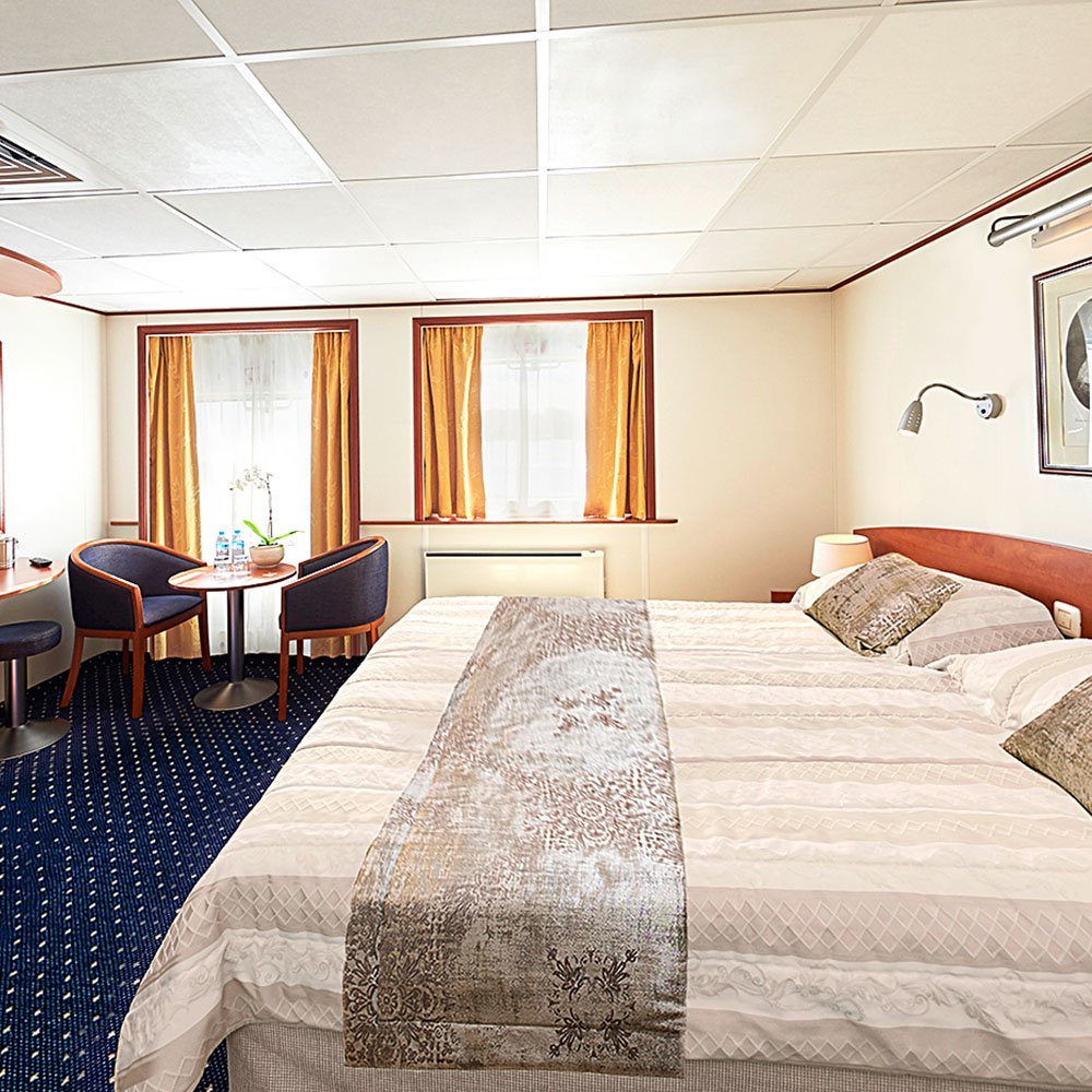 A fantastic selection of modern amenities encourage you to truly settle into your home away from home. You will find a restaurant serving Russian influenced European fine-dining, the Tsar Bar, where you can relax with your favourite tipple enjoying views of the unfolding scenery, the Tsar Bar is where you will find our complimentary WI-FI. On board we also have a library and a wellness centre, offering a range of sumptuous treatments. Enjoy complimentary beer, wine and soft drinks with lunch and dinner, and relax in your spacious cabin, complete with hotel-style bed, television and refrigerator, as your outside-facing window frames the beautiful scenery passing by.